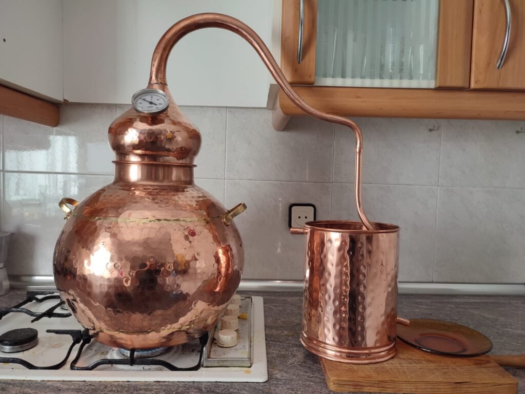 Primero realizaremos una destilación previa de limpieza. Esto es necesario si el alambique es nuevo o si hace tiempo que no lo usamos. Para ello realizaremos una primera destilación con agua y vinagre al 20%, así lo limpiaremos de impurezas.