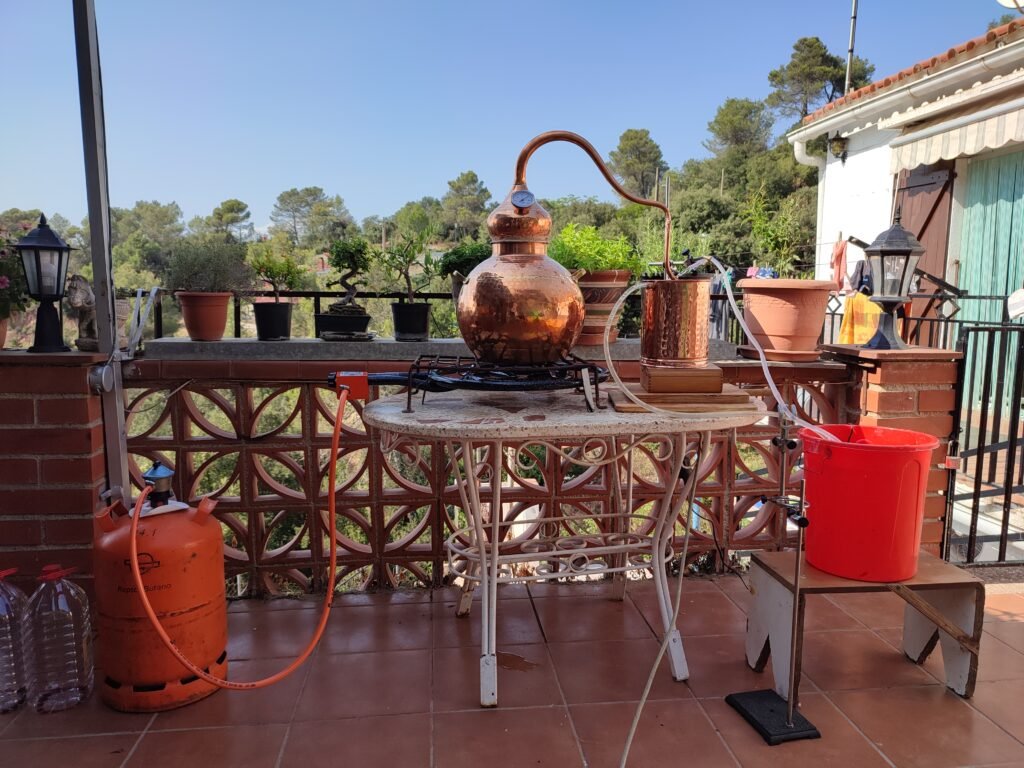 Procuraremos no tener prisa, es mejor ir despacio. Si intentamos subir la temperatura para agilizar el proceso pasarán 2 cosas; perderemos espíritu por no dar tiempo a condensarse en el serpentín, y la extracción será menos pura, pues las moléculas de alcohol y agua son muy afines y el espíritu resultante tendrá menos graduación.